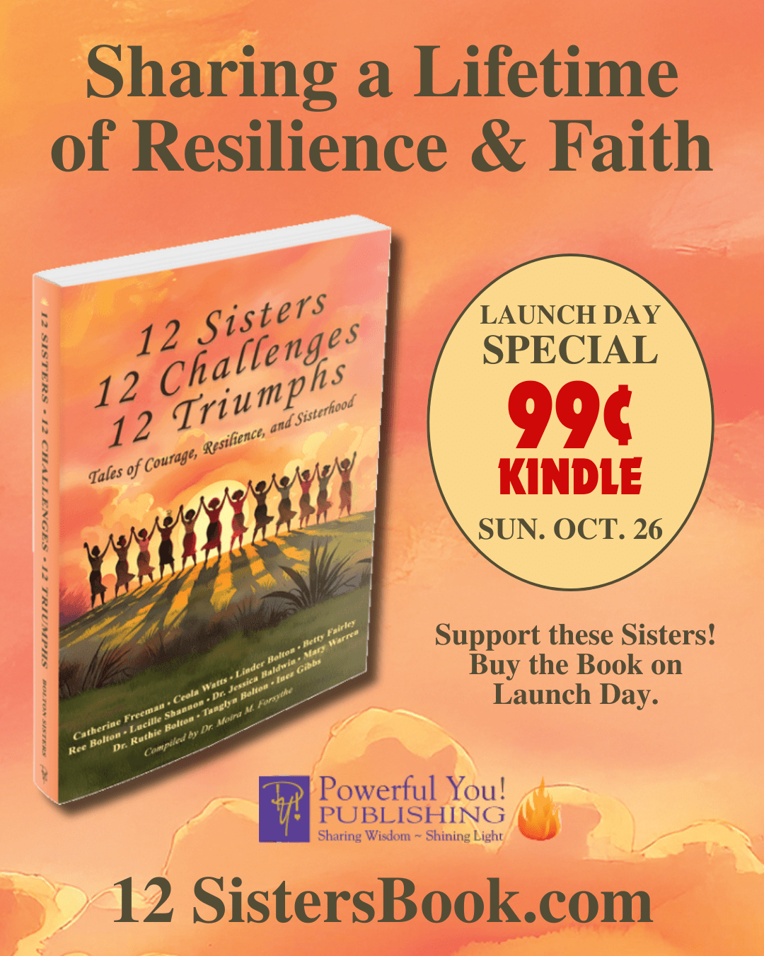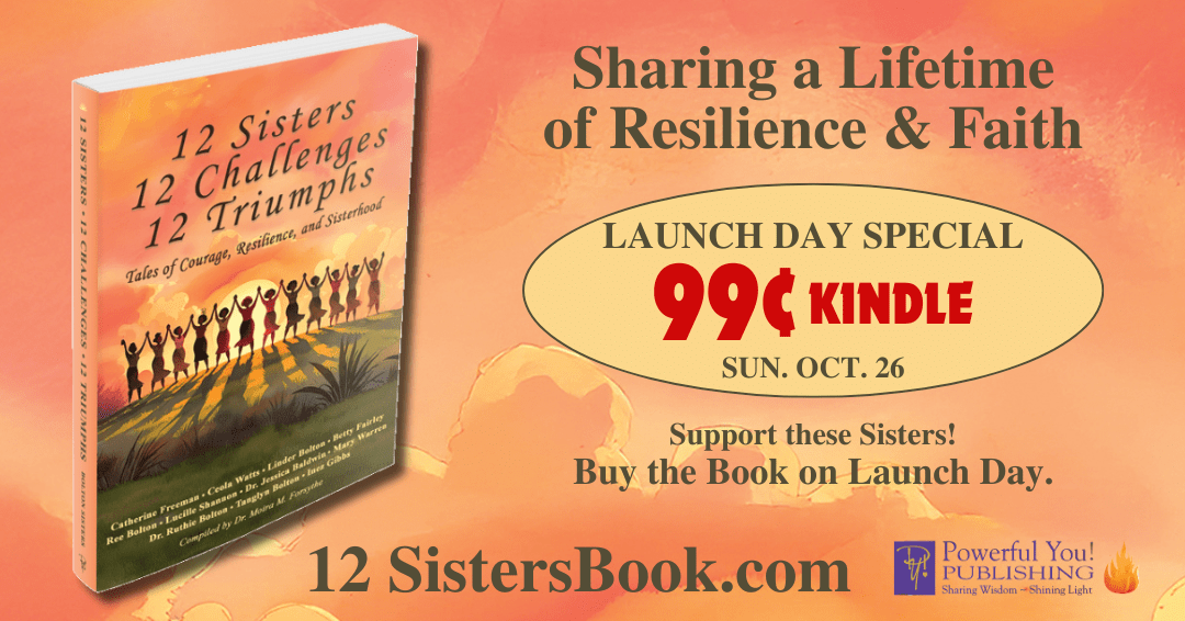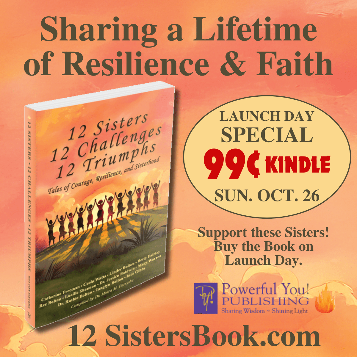 HELP ME become a Bestselling Author! All you do is purchase our book, “12 Sisters, 12 Challenges, 12 Triumphs” on October 26th for 99¢ (Kindle) and help us spread the word to others to buy it too! This book captures powerful stories of courage, resilience, and resourcefulness from sisters connected by family values, faith, principles of service, joy and sorrow, and strong spiritual guidance. The conflicts and challenges of navigating life in the South as part of a family of 20 children have produced experiences of personal growth that span over seven decades. Thanks so much for your help! My sisters and I are grateful for your support! Many blessings and much love to you ~
